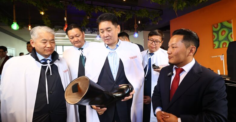 Монгол Улсын Ерөнхийлөгч Ухнаагийн Хүрэлсүх “Цагаан алт” үндэсний хөтөлбөрийн хүрээнд гутал үйлдвэрлэгч аж ахуйн нэгжүүдэд ажиллалаа.