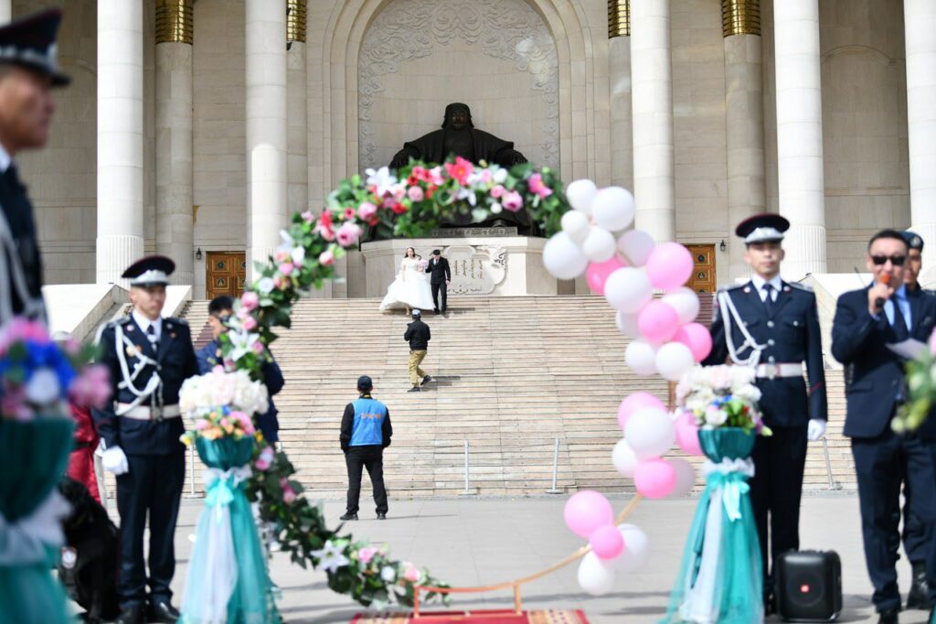 Нийслэлийн нутгийн захиргааны байгууллага НОБГ, ОСНААУГ, УСУГ, Нийслэлийн Цагдаагийн удирдах газар, Боловсролын газар, Зорчигч тээвэр 4, Баянгол эрүүл мэндийн төвөөс ажил амьдралын зам мөрөө холбосон долоон хос “Гэрлэх ёслолын ордон”-д хуримлалаа.