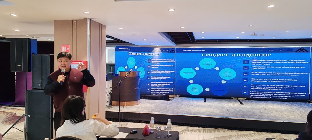 МБАНХ-ны Гүйцэтгэх захирал Д.Бурмаа “Бид “Хариуцлагатай нүүдэлчид” бэлчээрийн мал аж ахуйн зохистой дадлын стандартыг 2022 оноос нэвтрүүлсэн. Өнөөдрийн байдлаар 15 хоршоо гэрчилгээгээ авч, дахиад 15 хоршоо гэрчилгээгээ авах гээд хүлээж байна. Энэ 4 жилийн хугацаанд манай эгнээнд 25 гаруй үйлдвэр нэгдсэн байна. Стандарт зөвхөн ноолуур дээр биш бусад бүтээгдэхүүн дээр ч хэрэгждэг. Энэ удаагийн уулзалтаар малчид хоршоод, мах, арьс шир, ноос, ноолуур, өөх тос, авах хүсэлтэй үйлдвэрлэгчдийг хооронд нь уулзууллаа.