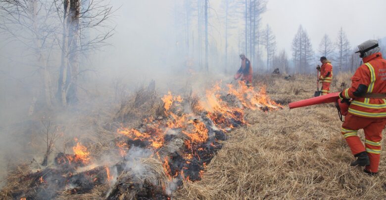Сэлэнгэ аймгийн Ерөө сум Буурагчин 2 дугаар баг “Хан-Хэнтий” тусгай хамгаалалт бүхий нутаг дэвсгэр “Майн-Зоо” гэдэг газар гарсан гал түймрийн голомтод Сэлэнгэ аймгийн Мандал сумын Онцгой байдлын хэлтсийн дарга, дэд хурандаа Э.Энхбаяраар Онцгой байдлын байгууллагын алба хаагчид, мэргэжлийн ангийнхан, иргэдээс бүрдсэн баг ажиллаж байгаа юм.