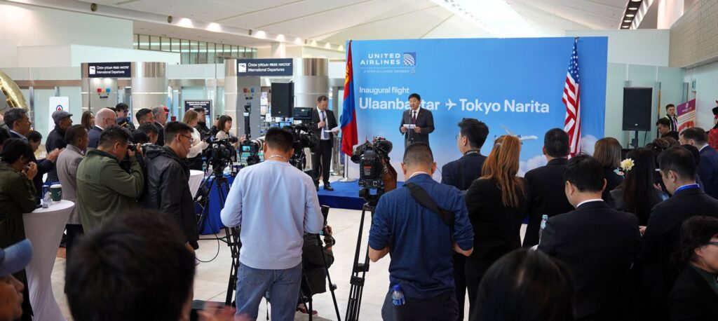 Нээлтийн үйл ажиллагаа “Чингис хаан” Олон Улсын нисэх буудалд өнөөдөр /2025.05.02/ боллоо. Ёслолын ажиллагаанд, Монгол Улсын Засгийн газрын гишүүн, Зам, тээврийн сайд Б.Дэлгэрсайхан, Соёл, спорт, аялал жуулчлал, залуучуудын сайд Ч.Номин, Монгол Улсаас АНУ-д суугаа Онц бөгөөд Бүрэн эрхт Элчин сайд Ө.Батбаяр, АНУ-аас Монгол Улсад суугаа Элчин сайд Ричард Буанган, “United Arilines”компанийн Зүүн Өмнөд Ази, БНСУ, БНХАУ-ын Маркетингийн бодлого хариуцсан захирал Уолтер Диас, United Arilines”компанийн Монгол, Сингапур болон оффлайн улсуудыг хариуцсан менежер, хатагтай Элайн Йип, “United Airlines” компанийн Нисэх онгоцны буудлын үйл ажиллагаа хариуцсан захирал Ноён Самуэл Шинохара болон холбогдох албаны төлөөлөл оролцлоо.