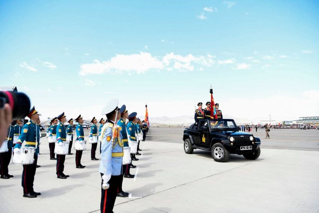 Ёслолын жагсаал командлагч Зэвсэгт хүчний Агаарын цэргийн командлагч хурандаа Б.Мөнх-Ирээдүй Батлан хамгаалахын сайд С.Бямбацогтод илтгэл өгсөнөөр нисэх онгоцууд болон 50 орчим нисэхийн үйлчилгээний тусгай зориулалтын машин техник, 1000 орчим алба хаагчид оролцсон баярын жагсаал ёслол төгөлдөр болж өнгөрлөө.