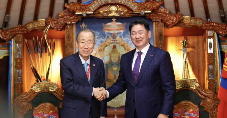 Монгол Улсын Ерөнхийлөгч Ухнаагийн Хүрэлсүх “Тогтвортой байдлын яриа хэлэлцээ 2025 – Уур амьсгалын өөрчлөлт: Тэрбуман мод” чуулга уулзалтад оролцож буй НҮБ-ын 8 дахь Ерөнхий нарийн бичгийн дарга, “Бан Ги Мүн” сангийн тэргүүн, “Чингис хаан” тэргүүн зэргийн одонт Бан Ги Мүн-ийг хүлээн авч уулзлаа.