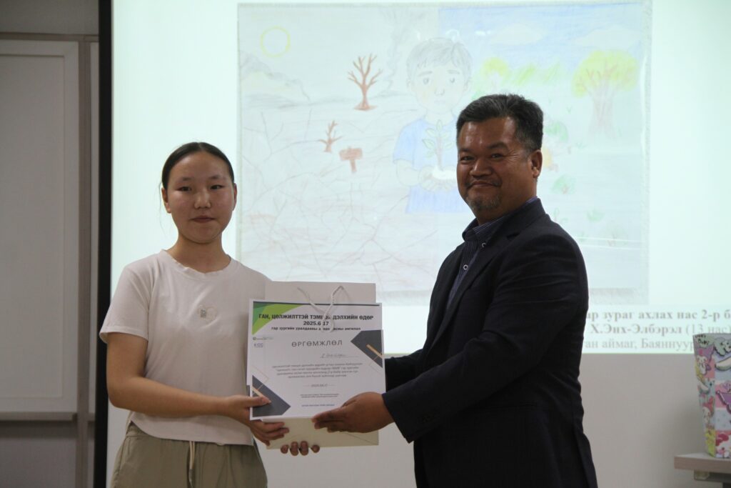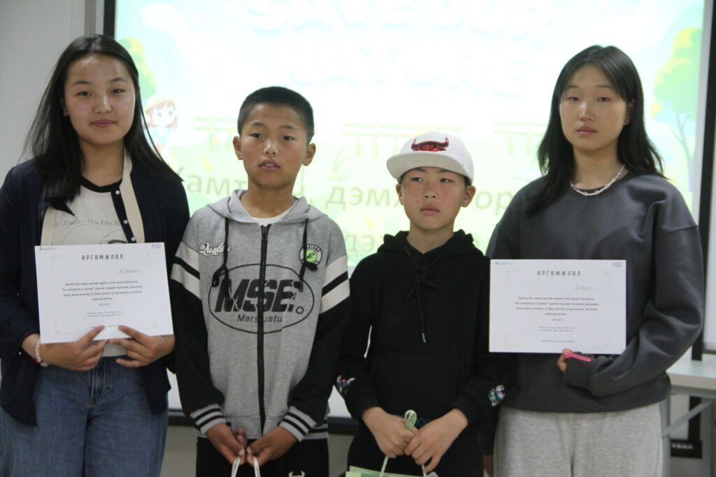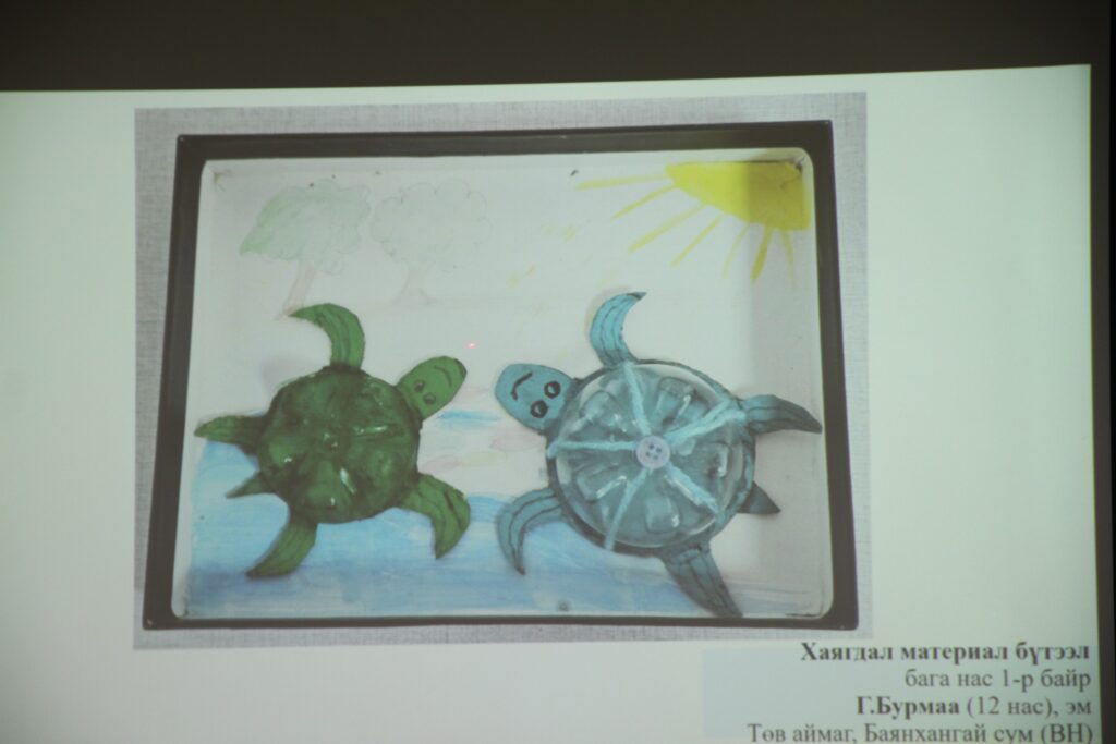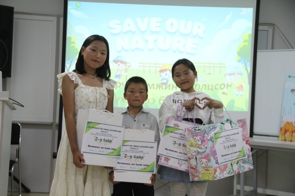 Байгаль орчны тулгамдсан асуудлыг хүүхдийн нүдээр харуулсан бүтээлүүдийг хүлээн авч, шилдэг оролцогчдыг шалгаруулан, шагнаж урамшууллаа. Уралдаанд Булган аймгийн Баяннуур, Төв аймгийн Баянцогт, Баянхангай, Эрдэнэ сумд дахь ойжуулалтын талбайн ажилчдын хүүхдүүд оролцсон юм.