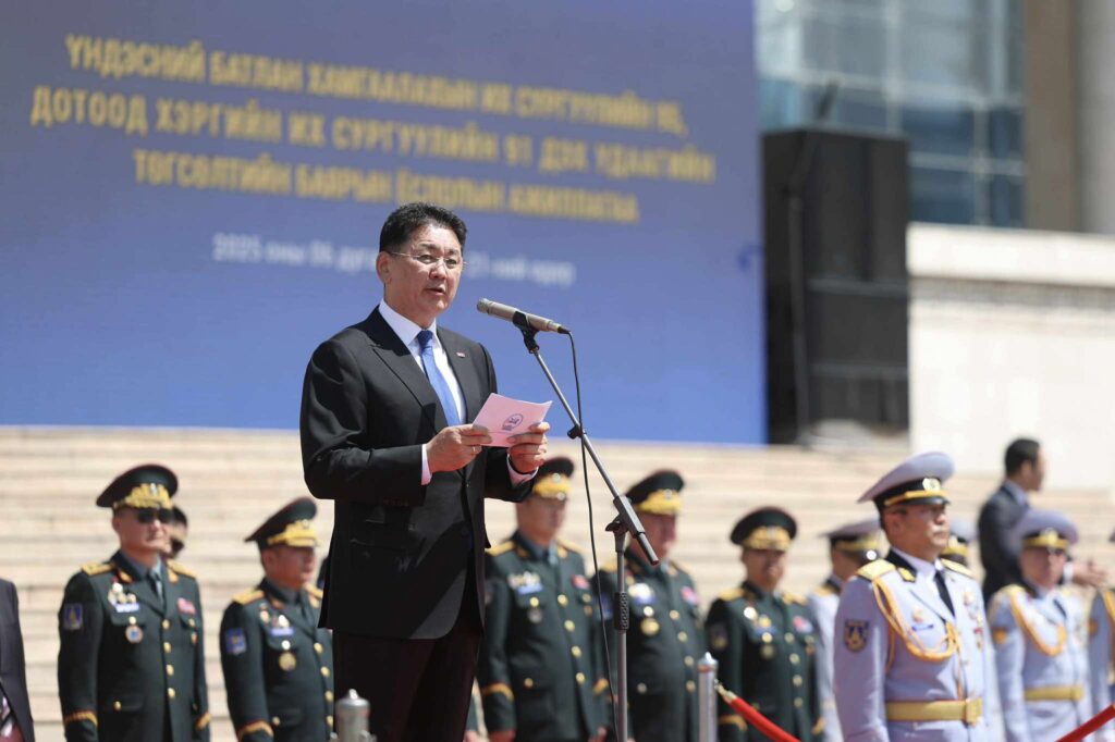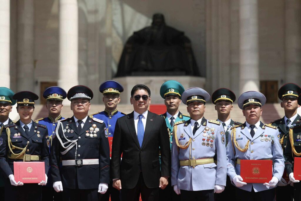 Монгол Улсын Ерөнхийлөгч, Зэвсэгт хүчний Ерөнхий командлагч У.Хүрэлсүх ёслолд оролцож, үндэсний аюулгүй байдлыг хангах нэр хүндтэй бөгөөд хариуцлагатай албанд хүчин зүтгэхээр цэргийн цолоо гардан авсан төгсөгчдөд баяр хүргэж, амжилт хүслээ.