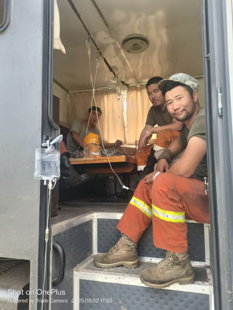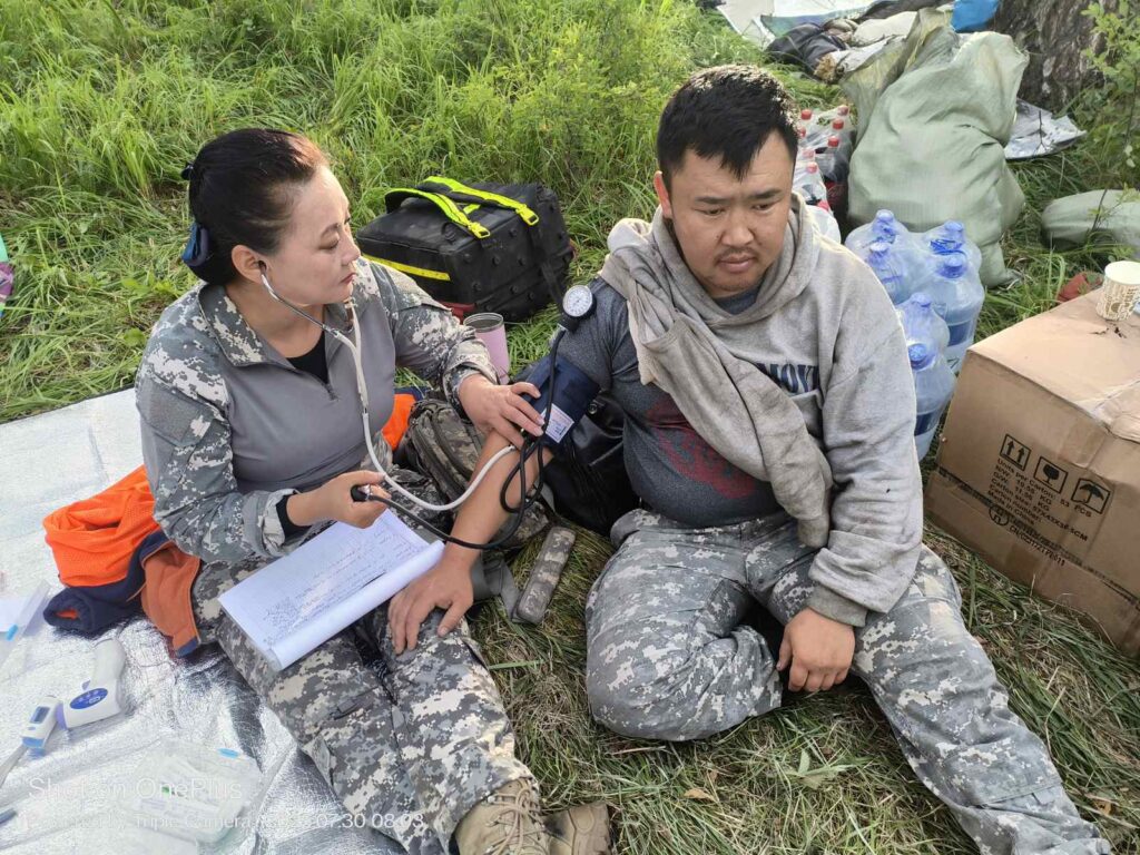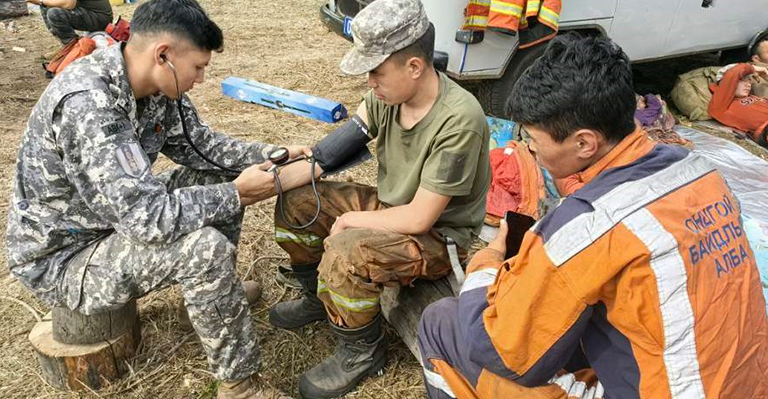 Сэлэнгэ аймгийн Мандал, Хүдэр, Ерөө суманд гарсан ой, хээрийн түймрийн голомтод үүрэг гүйцэтгэн ажиллаж байгаа ажилтан, алба хаагчдад эрүүл мэндийн тусламж, үйлчилгээг Онцгой байдлын байгууллагын эмч нарын бүлэг газар дээр нь үзүүллээ.
