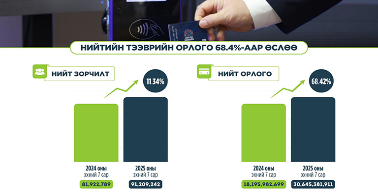 Улаанбаатар хот нийтийн тээврийн салбарт цогц шинэчлэлт хийсний үр дүнд нийтийн тээврийн салбарын орлого өмнөх жилүүдтэй харьцуулахад өссөөр байна. 2024 оны долоодугаар сарын 31-ний өдрийн байдлаар нийтийн тээврээр зорчигчдын тоо 81.9 сая, нийтийн тээврийн нийт орлого 18.1 тэрбум төгрөг байсан. 2025 оны долоодугаар сарын 31-ний өдрийн байдлаар нийтийн тээврээр зорчигчдын тоо 91.2 сая, нийтийн тээврийн нийт орлого 30.3 тэрбум төгрөг болж өслөө.