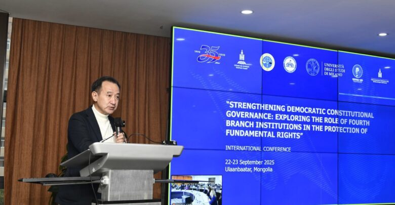 Монгол Улсын байнгын ажиллагаатай парламентын 35 жилийн ойг тохиолдуулан Улсын Их Хурлын даргын ивээл дор зохион байгуулж буй “Ардчилсан Үндсэн хуульт засаглалыг бэхжүүлэх нь: Үндсэн эрхийг хамгаалахад хөндлөнгийн хараат бус төрийн хяналтын байгууллагуудын үүрэг, оролцоо” сэдэвт олон улсын эрдэм шинжилгээний хурал өнөөдөр /2025.09.22/ эхэллээ.