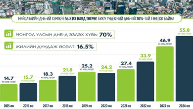 Нийслэлийн ДНБ-ий хэмжээ 55.8 их наяд төгрөгт хүрч, Монгол Улсын ДНБ-ий 70 хувийг бүрдүүлж байна
