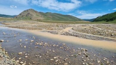 Шийртийн гол шавраар урсаж, Орхон гол ширгэхдээ тулж байна