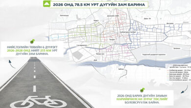 Нийслэлийн зургаан дүүрэгт 2026-2028 онд нийт 253 км урт дугуйн замын барилгын ажил хийхээр төлөвлөсөн. Үүнээс 2026 онд 78.5 км…