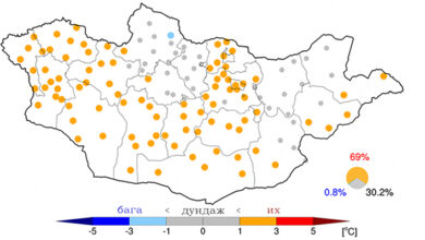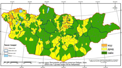 Цаг уурын байгууллагаас гаргасан улирлын ерөнхий төлөвөөр есдүгээр сард агаарын дундаж температур ихэнх нутгаар олон жилийн дунджийн орчим байх боловч…