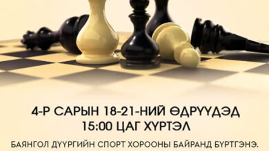 Шатрын спортыг хөгжүүлэх, түгээн дэлгэрүүлэх, шатарчдын ур чадварыг дээшлүүлж, хүүхэд залууст спортын ач холбогдлыг таниулах зорилгоор “Нүүдэл-999” шатрын анхдугаар тэмцээнийг…