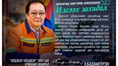 Эрдэнэт үйлдвэрийн уурхайчид, хамт олон, ахмадууд та бүхнийхээ амар амгаланг айлтган мэндчилье. Дэлхий нийтэд коронавирусын цар…