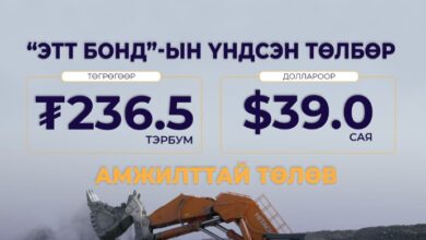 “ЭТТ БОНД”-ын 236.5 тэрбум төгрөг, 39 сая ам.долларын үндсэн төлбөрийг амжилттай төллөө