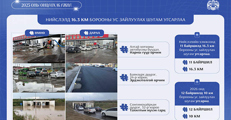 Энэ онд нийслэлийн хэмжээнд 11 байршилд 16.3 км борооны ус зайлуулах шугам шинээр угсарч, 2022 оноос он дамжин хэрэгжиж байсан…