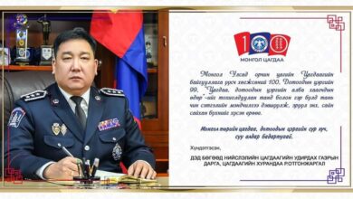 Wall 2021-07-20НЦУГ-ын дарга Р.Отгонжаргал цагдаагийн байгууллага үүсч хөгжсөний түүхт 100 жилийн ойн баярын мэндчилгээ дэвшүүллээ