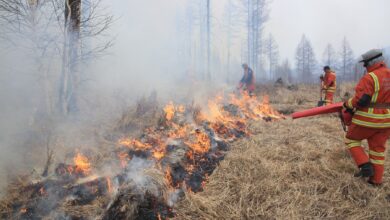 Сэлэнгэ аймгийн Ерөө сум дахь түймрийн голомтод салхитай байна