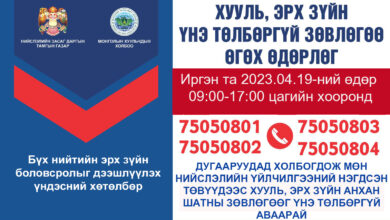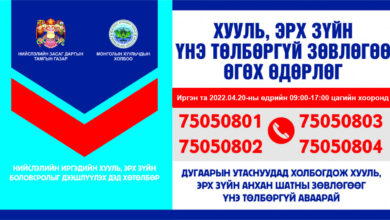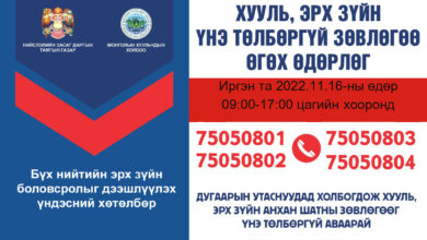 Өнөөдөр нийслэлийн иргэдэд хууль зүйн үнэгүй зөвөлгөө өгнө
