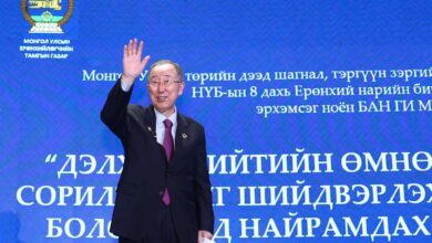 Монгол Улсын Ерөнхийлөгчийн зарлигаар тэргүүн зэргийн “Чингис хаан” одон хүртсэн НҮБ-ын найм дахь Ерөнхий нарийн бичгийн дарга Бан Ги Мүн…