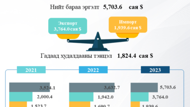 2023 оны эхний 3 сарын дүнгээр гадаад худалдааны нийт бараа эргэлт 5703.6 сая ам.доллар болж 2022 оны мөн үеэс 2070.9…